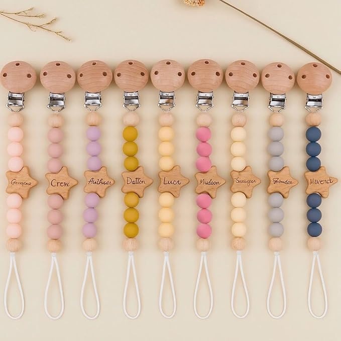 Personalized Customized Wooden Star Pacifier Clip for Baby